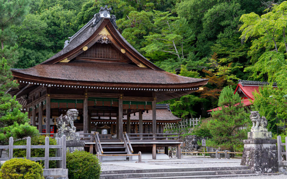 Izumo Grand Shrine in Kameoka City is known as a shrine of matchmaking. The deity, Okuninushi no Mikoto, is believed to be the god of marriage, and prayers have long been offered for marital bliss, domestic safety, and the fulfillment of good marriages.