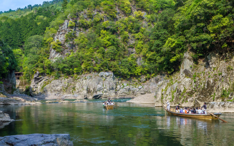 The Hozu River cruise is a beautiful and scenic 16 km long boat ride from Kameoka to Arashiyama. As you sail down the clear and gentle waters of the Hozu River, you can enjoy the tranquil and beautiful scenery in each passing season.